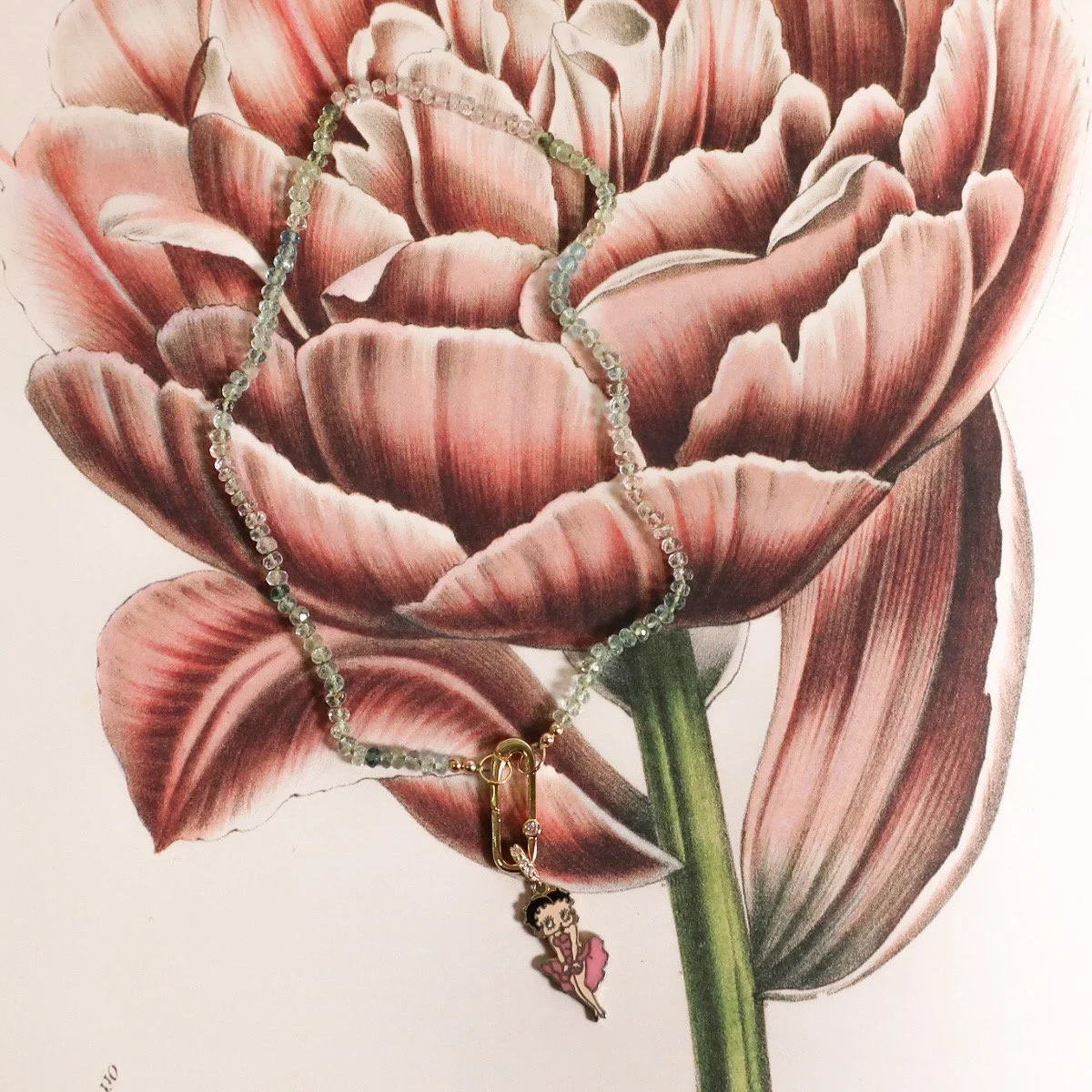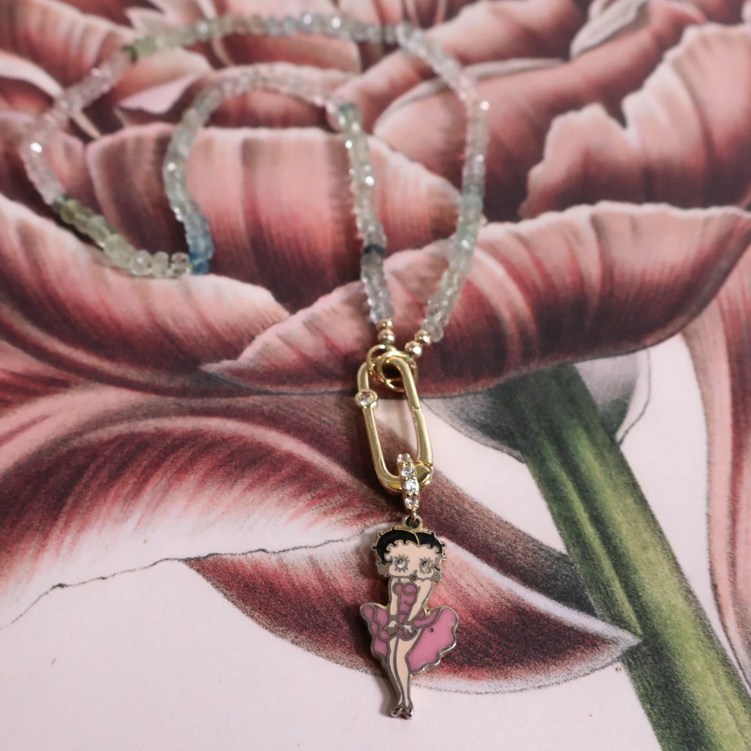 AQUAMARINE BEADED NECKLACE W/ BETTY BOOP VINTAGE CHARM