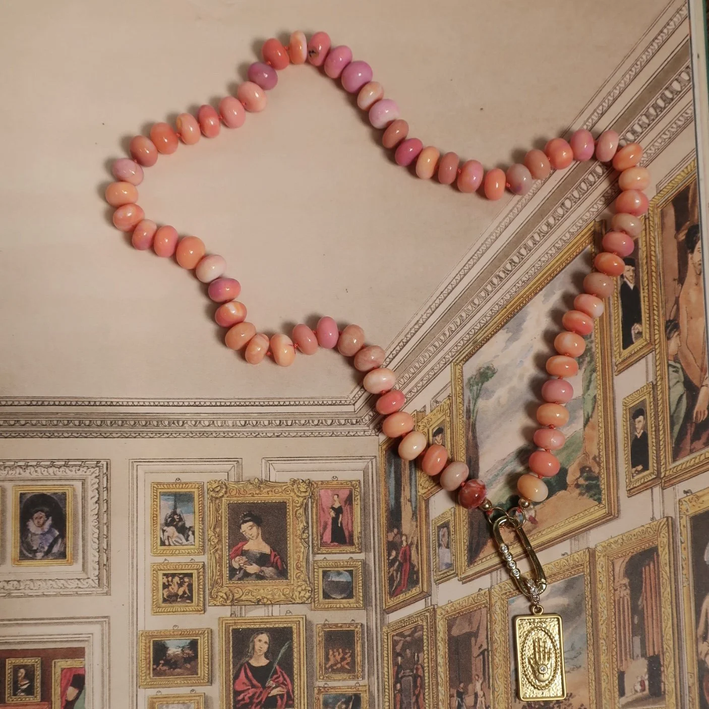 HAMSA CORAL OPAL BEADED NECKLACE